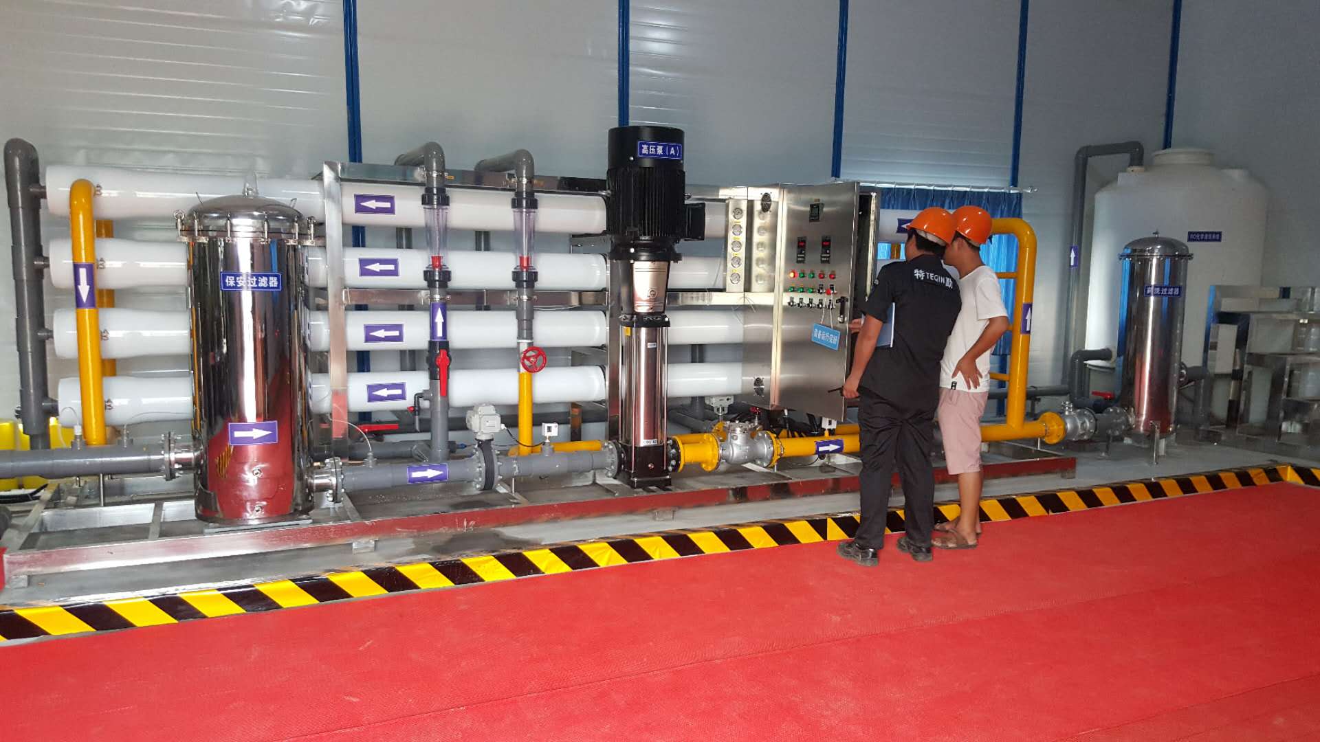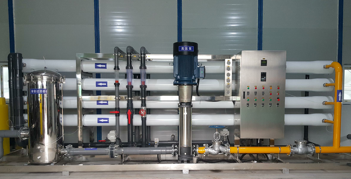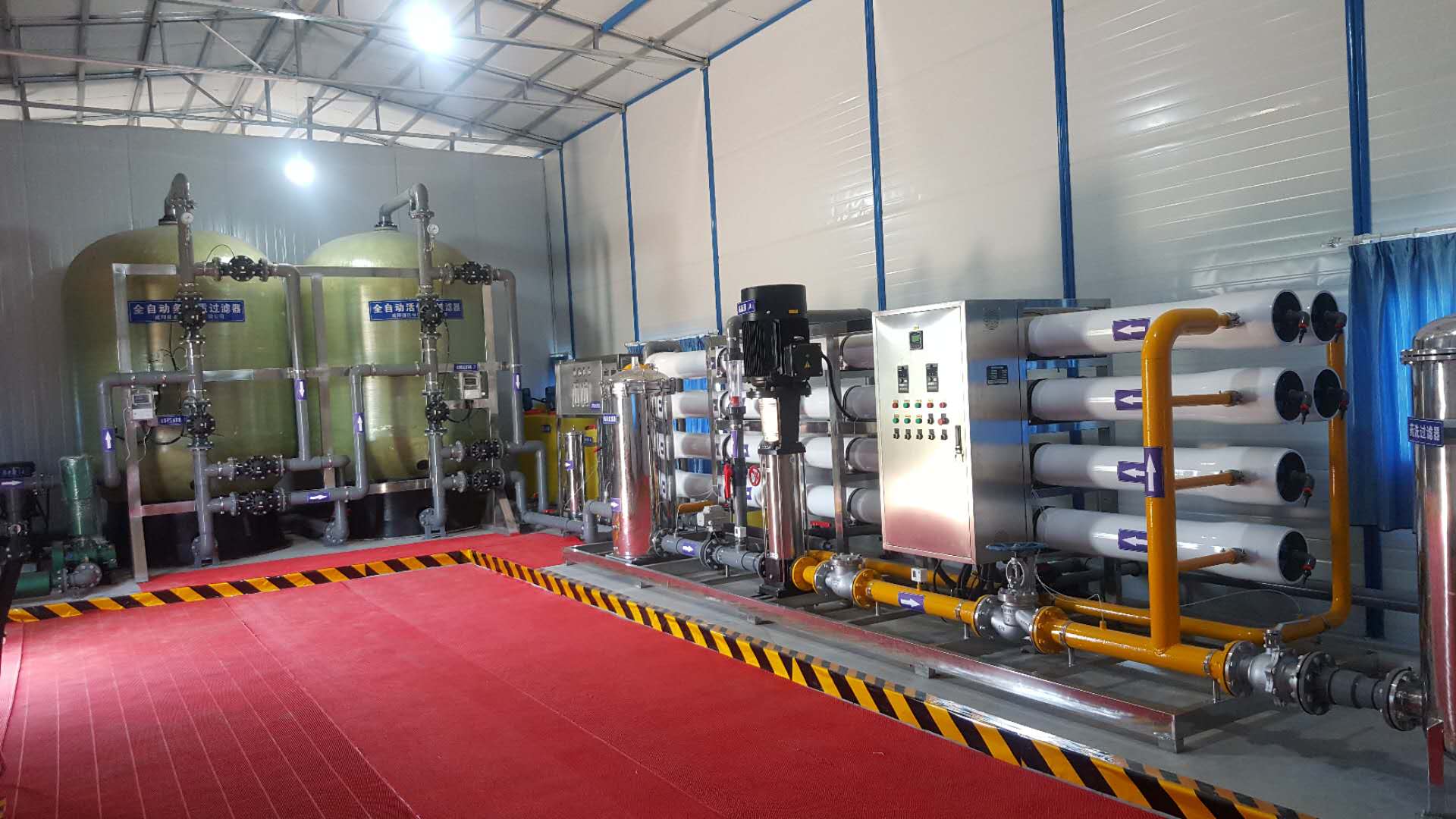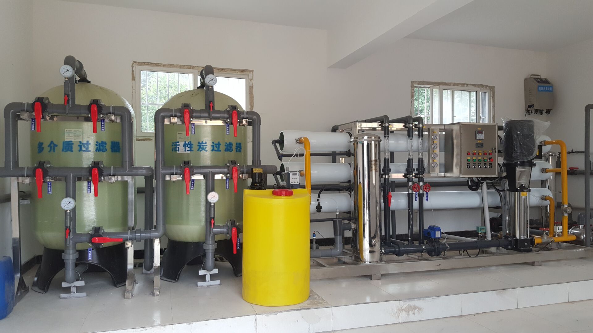 反滲透設備是將原水經(jīng)過精細過濾器、顆?;钚蕴歼^濾器、壓縮活性碳過濾器等,再通過泵加壓,利用孔徑為1/10000μm(相當于大腸桿菌大小的1/6000,病毒的1/300)的反滲透膜(RO膜),使較高濃度的水變?yōu)榈蜐舛人?,同時將工業(yè)污染物、重金屬、細菌、病毒等大量混入水中的雜質全部隔離,從而達到飲用規(guī)定的理化指標及衛(wèi)生標準。